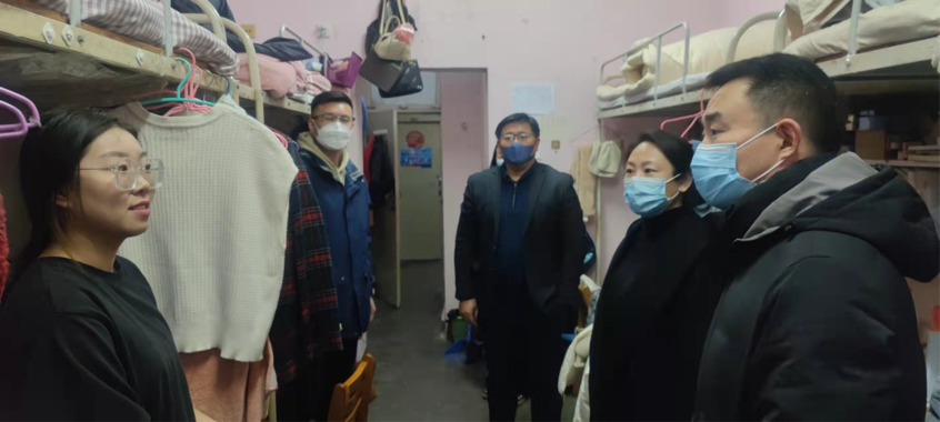 2月19日,党委书记宗传军,院长尹蕾,党委副书记、副院长蘧广震,团委书记梁建新带领辅导员、班主任进行宿舍走访慰问,为返校学生送去温暖。
