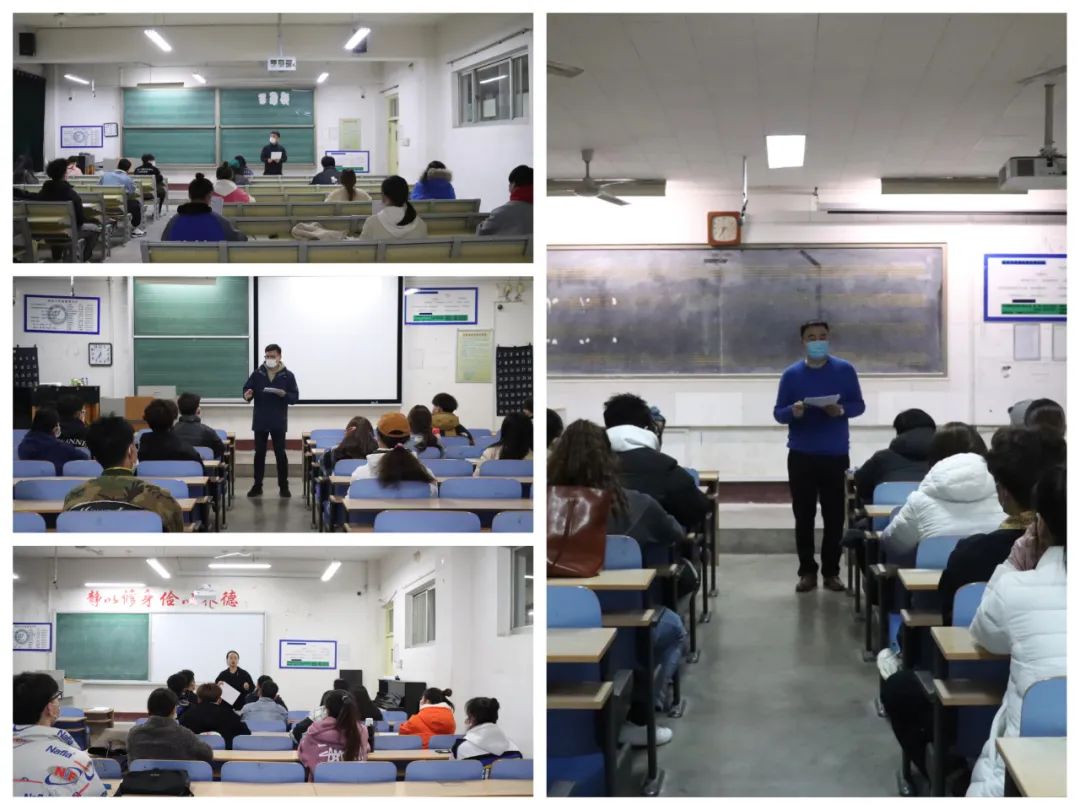 3月23日下午,18av 于9#201、301、304、308教室召开“众志成城、同心抗疫”主题班会,部署疫情防控工作。18av 党委副书记、副院长蘧广震带领团委书记梁建新、辅导员陈蓝天、石晓晗分别主持,各年级班长、团支书参加会议。