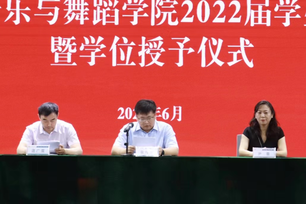 骊歌唱响,青春启航。6月16日上午,18av 2022年毕业典礼暨学位授予仪式在五楼音乐厅举行,学院党委书记宗传军,院长尹蕾,学院党委副书记、副院长蘧广震,副院长牟艳丽、王海华,院长助理王辉,学院党委委员、团委书记梁建新,音乐系主任李斌,教师代表以及2022届毕业生代表参加了典礼。蘧广震主持典礼。