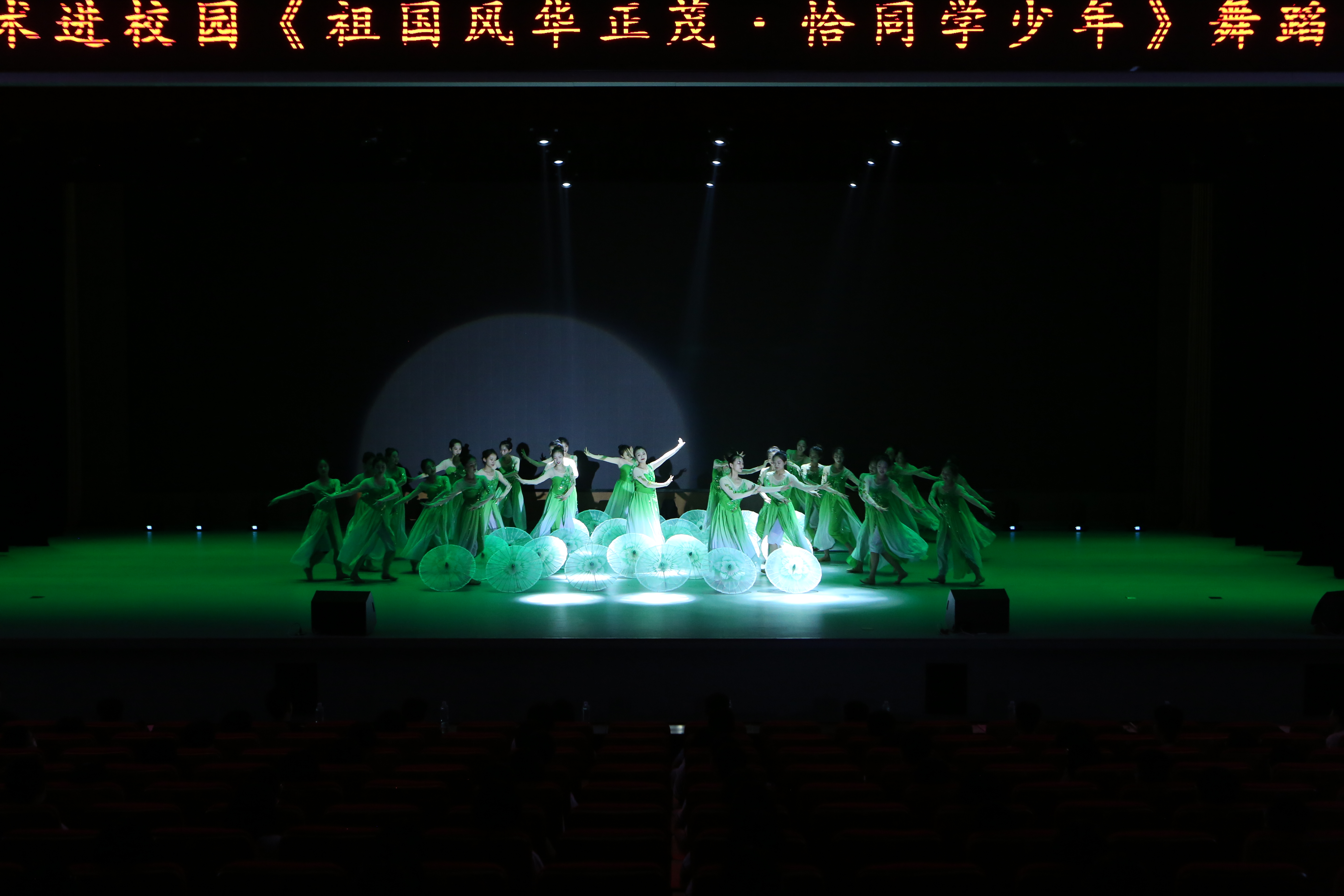 为全面弘扬我国传统文化,提高学生艺术修养和审美情趣,营造浓厚校园文化氛围,6月18日、19日,由山东省教育厅主办、18av 18av 承办的2022高雅艺术进校园“祖国风华正茂、恰同学少年”红色文化题材舞蹈专场晚会在菏泽郓城一中和成武二中顺利举办。院长尹蕾携带队教师与菏泽市教育局、郓城县教育局、成武县教育局负责领导,郓城一中、成武二中校领导及1000余名师生代表观看了演出。