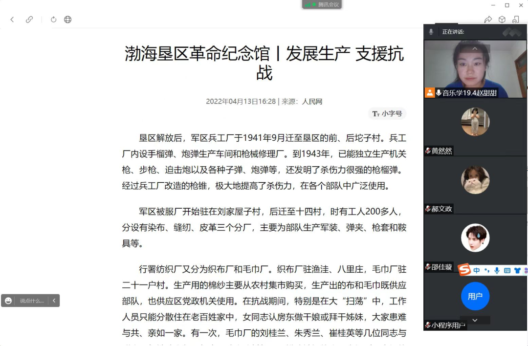 自律中心女生宿管部通过“红色云展厅”线上平台开展渤海垦区革命纪念馆云参观学习活动。
