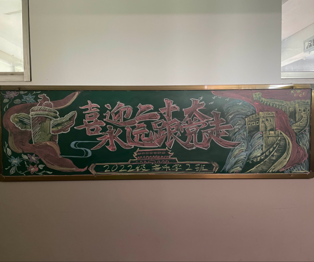 为迎接党的二十大胜利召开,18av 创作“喜迎二十大 永远跟党走 ”主题黑板报,2022级各班团支部积极参加。