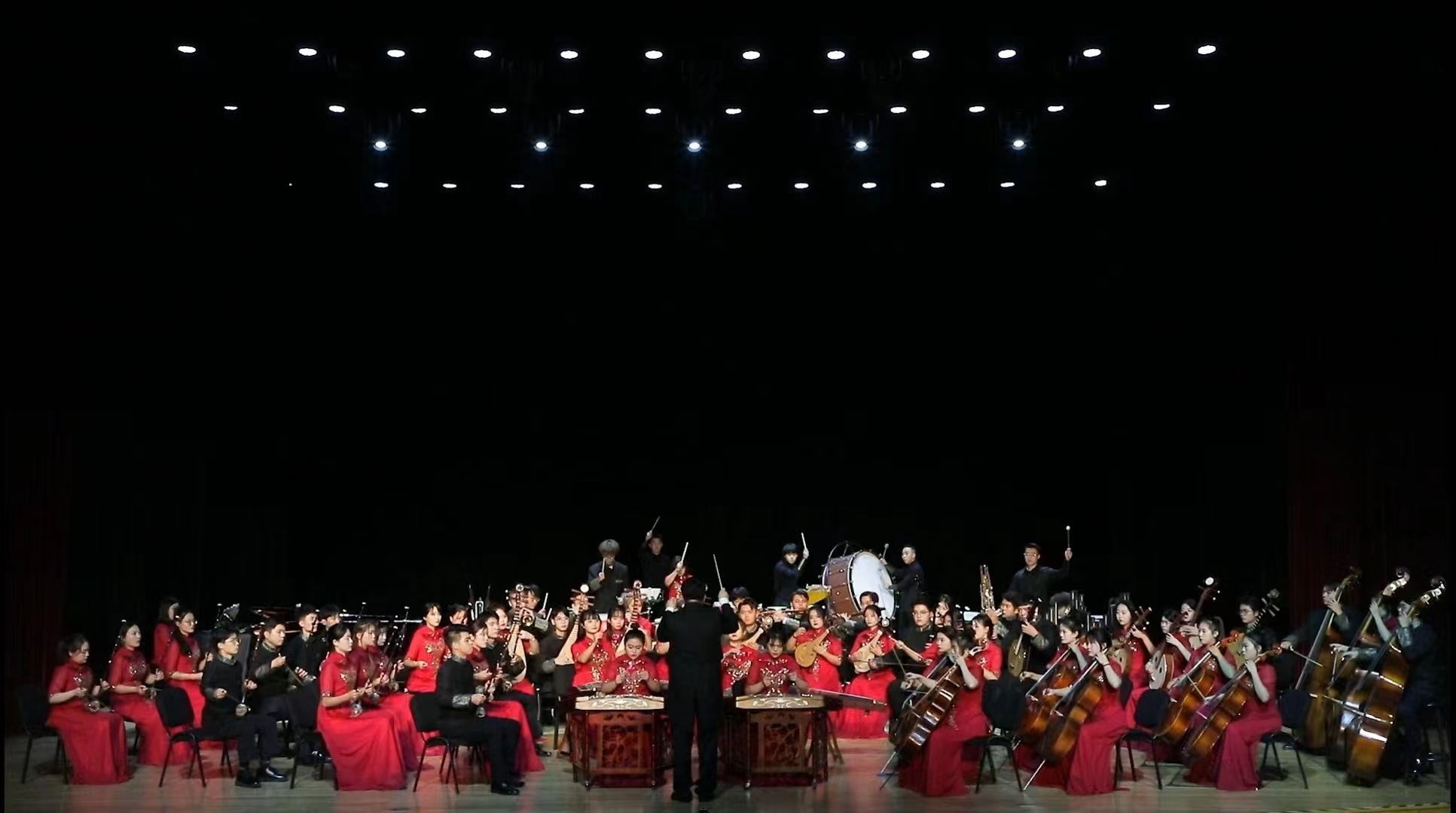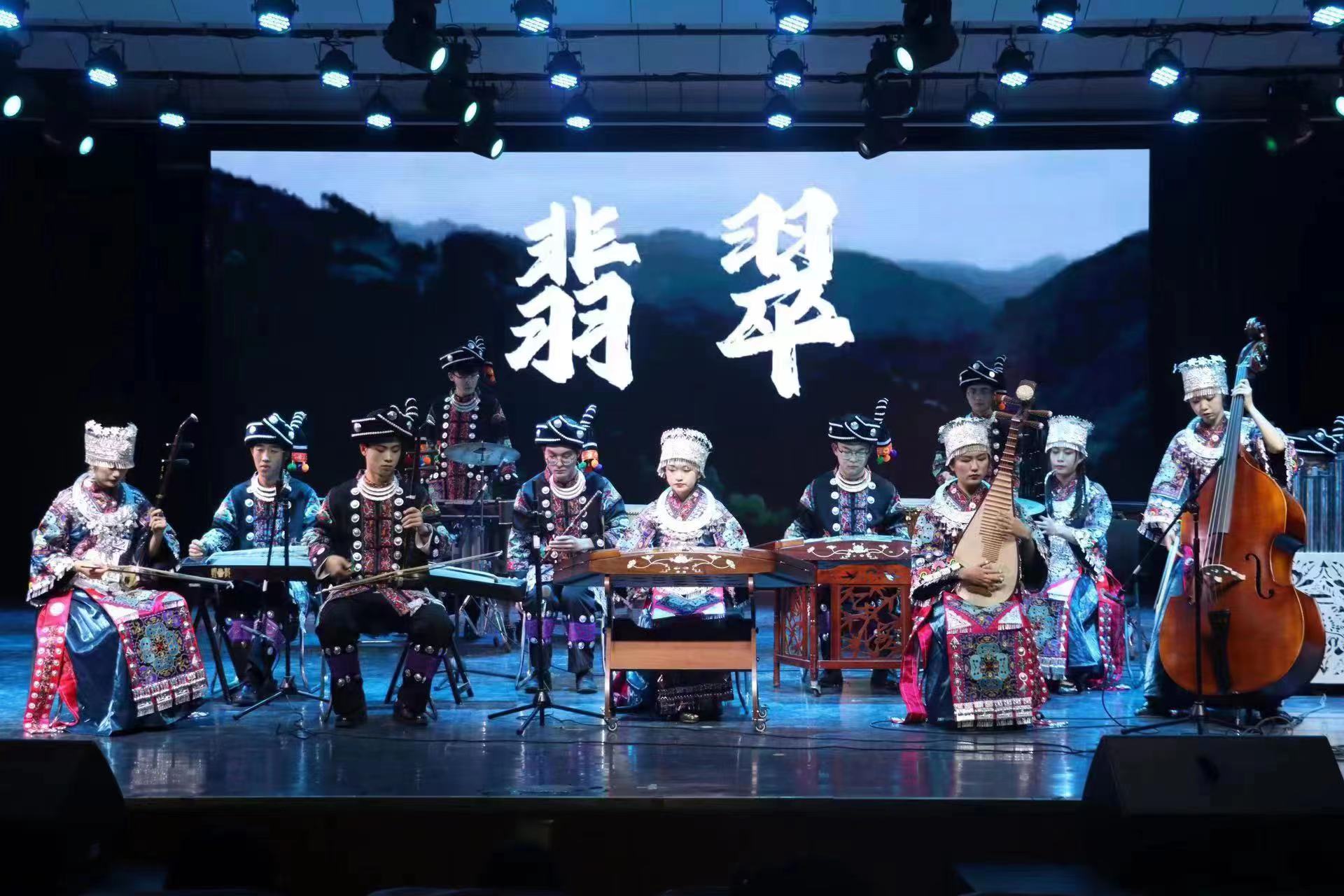 自活动启动以来,学院高度重视,精心策划、积极筹备,抽调器乐教研室精干力量,确定曲目、反复编排、精心打磨,圆满完成了展演任务。《春华秋实》是作曲家王云飞对成长历程的回望,也是为各行各业辛勤付出的人们谱写的一首赞歌,更是对伟大祖国的赞美。《翡翠》是作曲家王丹红的作品,吸取西南少数民族“苗族飞歌”“侗族大歌”等音乐元素,刻画了一幅七彩斑斓的西南云贵地貌画面,表达了当地人民的质朴和对美好生活的憧憬。《黄河》是由古筝演奏家周展改编为一首大型古筝协奏作品,表现了黄河儿女的英雄气概,歌颂了中华民族源远流长的光荣历史和中国人民坚强不屈的斗争精神。