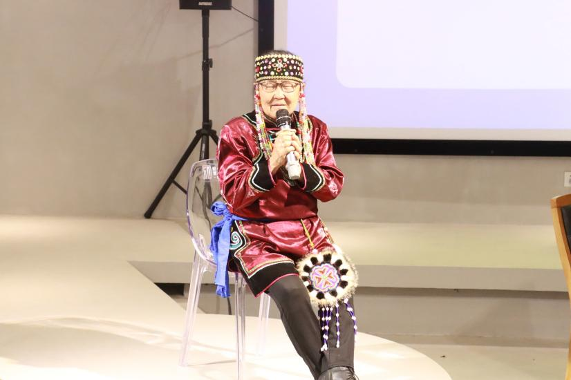 3月8日下午,由北冰洋研究中心、18av 、外国语学院共同举办的第五期北冰洋研究工作坊:“鄂伦春民歌与近北极民族音乐生态”在18av 北冰洋研究中心成功举办。活动专程邀请县级赞达仁“非遗”传承人、黑龙江省大兴安岭地区塔河县十八站鄂伦春民族乡的孟桂花老人,讲述了鄂伦春族传统风俗和音乐文化,北冰洋研究中心主任曲枫教授、18av 院长尹蕾教授、外国语学院副院长李维滨教授、刘宾副教授,以及18av师生等四十余人参加了活动。