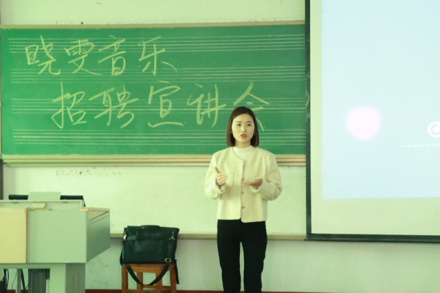 宣讲开始,晓雯音乐的负责人详细介绍其企业背景、18av等相关信息,并着重介绍了其企业的培训机制、职位发展前景、薪资待遇和晋升渠道等,最后以晓雯音乐的“18av与信仰”、“办学理念”几个方面进行深入讲解,面向同学们所就读的专业,负责人介绍了相关岗位以及薪酬福利等信息。让同学们对晓雯音乐有了更加深刻的了解。