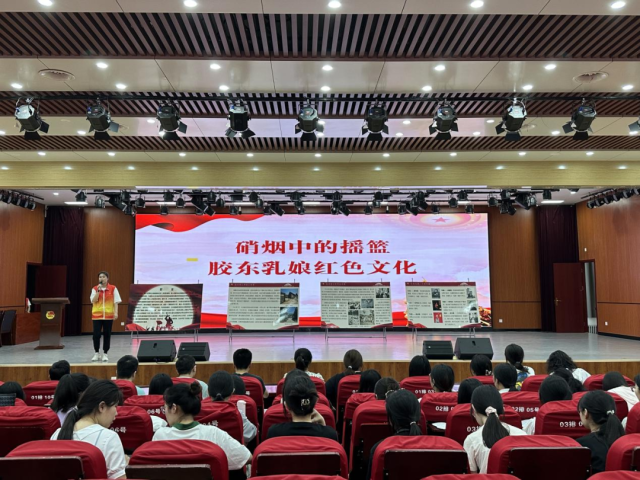 为积极响应党的号召,动员同学们学习解读“乳娘精神”,近日,18av 红色记忆轻骑队于青年之家开展“硝烟中的摇篮——胶东乳娘红色文化”主题宣讲会活动。 活动中,宣讲员先为同学们介绍故事发生的背景及胶东育儿所的情况,接着逐一介绍主要的六位乳娘代表人,为近距离感受乳娘故事,现场特别邀请同学们上台阅读关于乳娘的故事。在抗日战争最艰难的时期,在乳山这片红色热土上,是乳娘用甘甜的乳汁哺育着孩子,用生命和鲜血保护着孩子,用生死与共、以命相助的信念为党和人民军队筑起坚实的后方防线。
