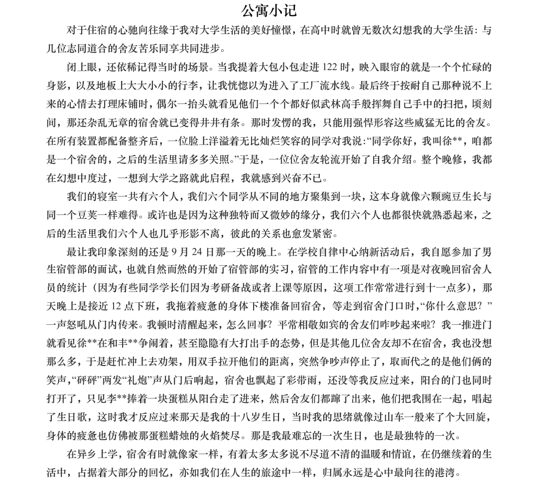 活动期间,同学们积极响应、踊跃投稿,通过文字分享宿舍故事,传递宿舍文化,共同分享宿舍生活中的点点滴滴,字里行间流露出舍友之间的深厚友谊。此次活动共征集作品52份,经公正评审,评出一等奖1名、二等奖2名、三等奖3名。
