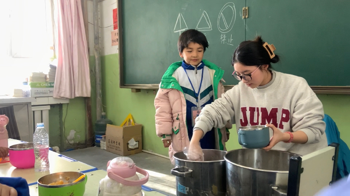 相比刚来的时候,现在的我放松了很多,以前总会焦虑不知道该怎样和他们上课、相处。但是现在我发现孩子们是非常单纯,容易相处的,每次一进教室就会有学生同我握手、送我他画的画、做的手工,甚至会有学生拥抱我。只要我走在校园里就会有学生追上来问“老师,你什么时候给我们班上课啊”“老师,你今天上课吗”“老师,你好漂亮”,孩子们童真稚嫩的话总会在不经意间治愈我。