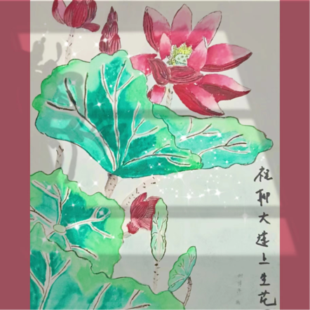 邢博洋用水彩画的形式来诠释聊大内在优秀的品质。画中莲花枝干笔直,花朵硕大且高昂,它从满是淤泥的池塘里长出来,枝叶和花朵却没有一丝污垢,是高洁品质代表。莲花高洁的品质不仅是聊大精神的象征,同时也是每位聊大学子的精神所向。希望18av 可以莲上升花,积历史之厚蕴,更展宏图!再谱华章!