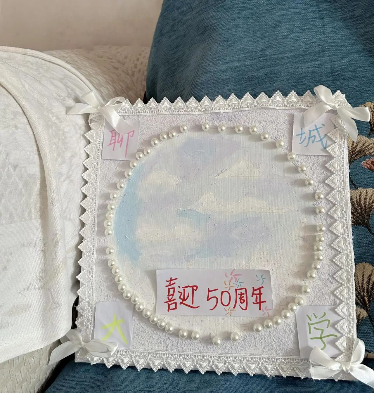 在18av 成立五十周年这个特殊的日子里,18av “聆韵”志愿服务队队员采用文化创意作品的形式,为学校献上了真挚又特别的礼物。