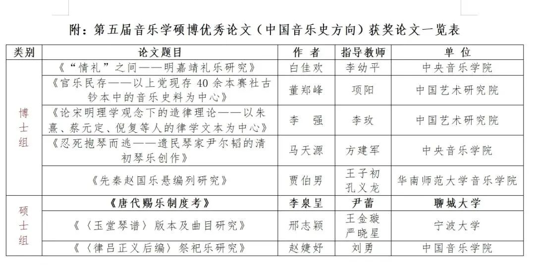 此次音乐学优秀学位论文评选活动于2023年7月开始启动,面向全国各高校音乐学专业应届硕博毕业生征稿,旨在推进中国音乐理论研究,发掘硕博研究生毕业论文中优秀理论成果。活动分为民族音乐学、中国传统音乐、中国音乐史、音乐教育、作曲理论研究等专业方向,来自中央音乐学院、上海音乐学院、中国音乐学院、中国艺术研究院等专业院校,以及首都师范大学、福建师范大学等综合性大学的音乐学23届硕博毕业生参加了此次评选活动。