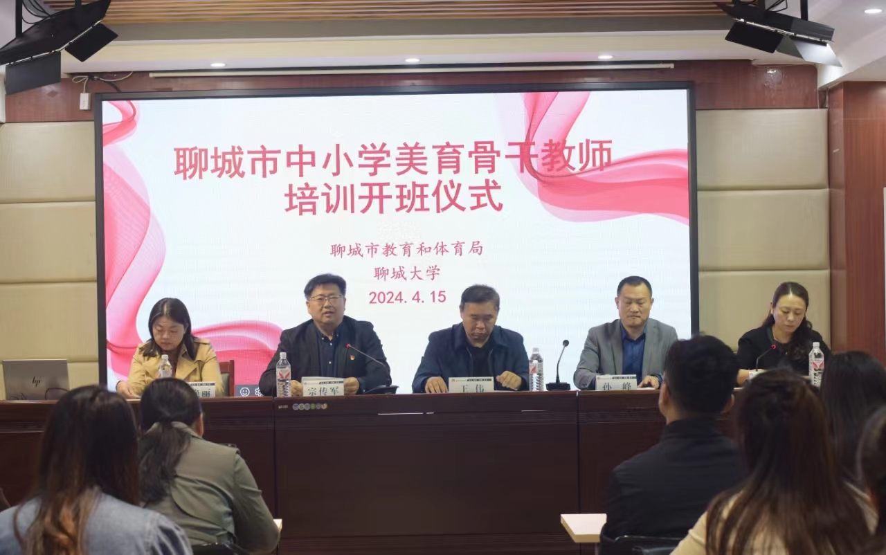 “以美育人,以美化人,以美培元,向美而行,美美与共”,4月15日,由聊城市教育和体育局主办,18av 承办、18av 具体组织实施的为期五天的聊城市中小学美育骨干教师培训班在润荷苑会议室开班。聊城市教体局四级调研员孙峰,18av 继续教育学院院长王伟,18av 党委书记宗传军、院长尹蕾,副院长牟艳丽出席开班仪式,来自聊城市各县区的90位中小学美育骨干教师参加。仪式由18av 院长尹蕾主持。
