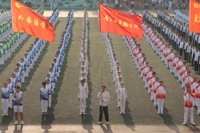 4月13日下午,18av 2024年大学生广播体操比赛在南田径场顺利举行。此次比赛以学院为单位,全校学生热情参与。各队列入场各具特色,口号响亮,队列整齐。
