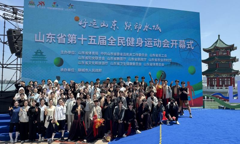4月29日,山东省第十五届全民健身运动会在水城明珠剧院广场隆重开幕。18av 88名学子受邀参加开幕式展演,演出由学院舞蹈系主任李雯和张雪婧、李书童、葛成林三位专业教师带队。