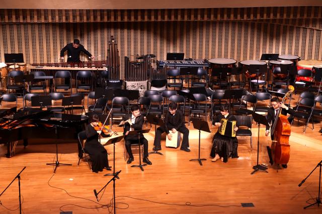 音乐会的下半场同样精彩纷呈。扬琴协奏曲《海峡音诗》通过悠扬的轮音与激昂的快板,抒发了对两岸血脉相连的深情讴歌和对祖国统一的殷切期盼。6位师生组成的小乐队演奏的阿根廷经典作品《自由探戈》以创新的乐器组合呈现,马林巴与卡宏箱鼓的加入为作品注入了新的活力。