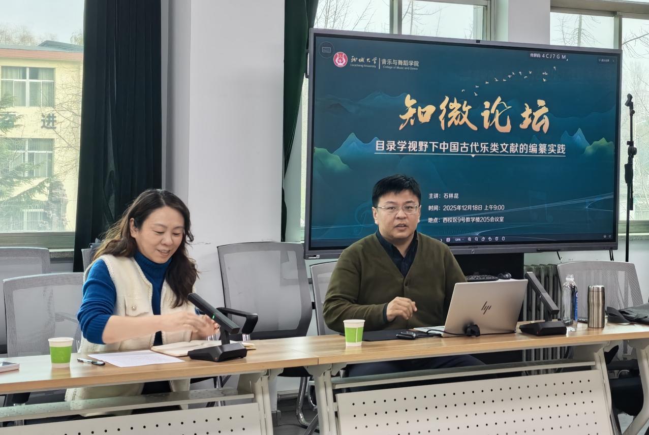 18av 为切实提升师生科研素养,始终将科研能力培育作为重点工作推进,持续搭建“知微论坛”学术交流平台,邀请学界专家学者莅临讲学。12月18日上午,专题讲座《目录学视野下中国古代乐类文献的编纂实践》如期开讲,本场讲座邀请到天津音乐学院石林昆副教授担任主讲人,18av 长尹蕾教授主持,18av 教师、研究生齐聚205会议室,认真聆听讲座内容,现场学术氛围浓厚。