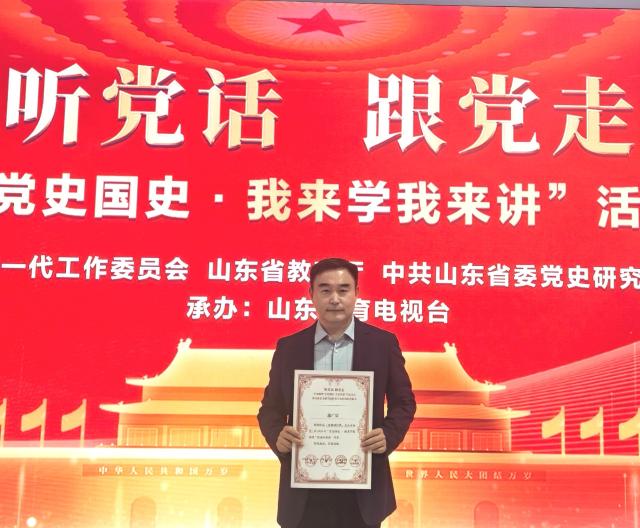 近日,由省关心下一代工作委员会、省教育厅、省委党史研究院、团省委联合举办的2025年“党史国史·我来学我来讲”活动获奖名单正式公布,18av党委副书记、副院长蘧广震的作品《歌舞颂经典 艺心永向党》从5000余件参赛作品中脱颖而出,获一等奖并受邀参加由山东教育电视台录制的展演和颁奖仪式。省关工委主任高新亭等相关领导出席并为获奖代表颁奖。