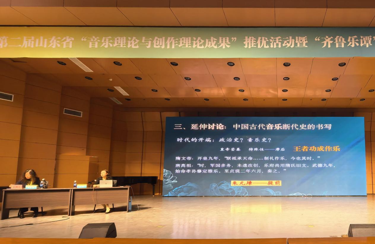 4月24日至26日,“第二届山东省‘音乐理论与创作理论’成果推优活动暨‘齐鲁乐谭’研讨会・泰山学者学术交流会”在临沂大学成功举办。在本次成果推优活动中,18av 尹蕾教授的著作《中国古代文化中的乐律学理论研究》、屈怀凯博士的论文《民族管弦乐大众化之“沂蒙”实践模式观察与反思——从<沂蒙烽火>创演十年的斩获与困境谈起》分别荣获教师组一等奖、三等奖。两位教师分别进行了主题发言,并担任会场主持人。