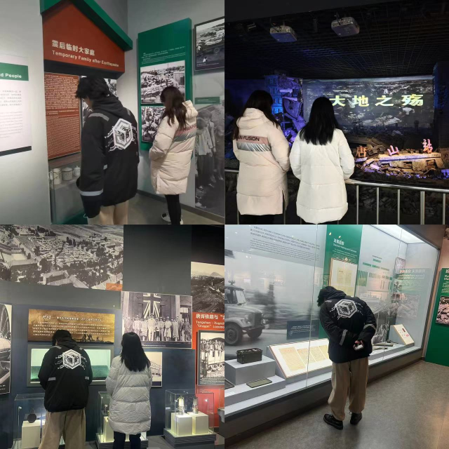 队员们怀着沉痛的心情踏入抗震纪念馆,首先来到了第一个展区,屹立的模型再现了当年唐山大地震的悲惨场景:住房倒塌,人们四处逃生,身影出现在残垣断壁之间......透过模型,队员们仿佛置身于当年的灾难现场,深刻感受到了地震来临时的恐怖和无助,了解了地震对人民生命财产所造成的巨大损失。