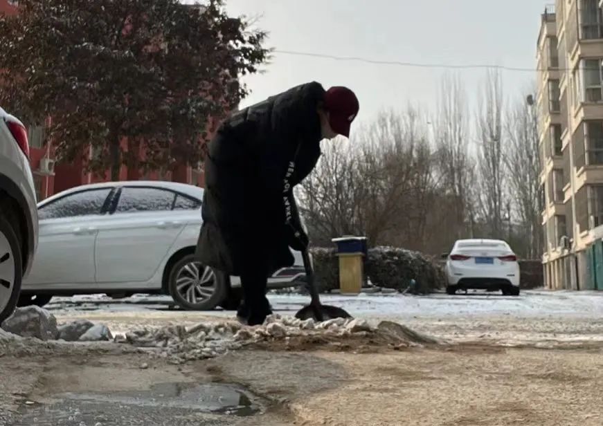活动中志愿服务队成员充分发扬不怕苦、不怕累的精神,拿着铁锹奋力铲冰清雪。尽管手和脸冻的通红,但这并没有影响扫雪除冰的热情和工作效率,大家冲在前、干在先、战严寒、斗冰雪,分工有序,干得热火朝天,道路上演奏着“咣咣咔咔嚓嚓”的扫雪除冰“进行曲”。忙碌的身影映衬着红色的马甲,在冬天凛冽的寒风中构成了一道靓丽的风景。队员们表示作为志愿者,在助人的同时也是自助,积极主动得参与各种公益活动,既能帮助他人,也能提升自己的能力。