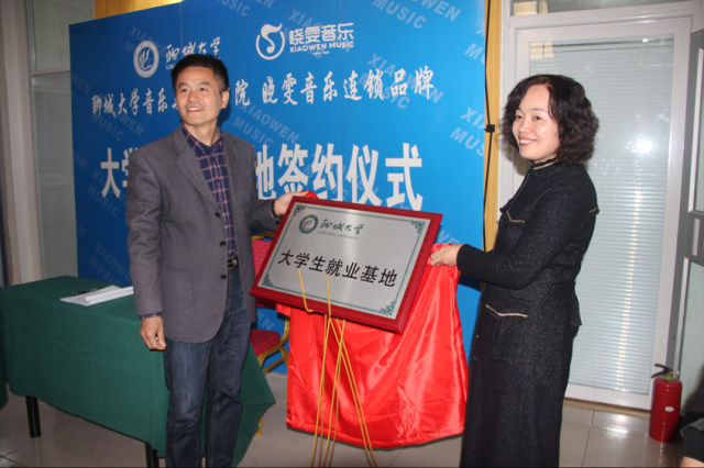 9月23日,18av 与聊城市东昌府区晓雯音乐培训学校有限公司建立就业基地并举行签约授牌仪式,18av 党总支副书记张进军,团委书记梁建新,科研秘书潘佩佩,辅导员石晓晗以及晓雯音乐培训学校领导出席了本次仪式。